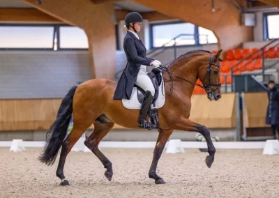 Caramelo is een bruine APTO PRE hengst uit 2013 met een officieel gemeten schofthoogte van 165cm. In de sport is hij geklasseerd in de Lichte Tour dressuur en Masters Working Equitation. Caramelo is een vriendelijke en zachtaardige hengst met een geweldige instelling.