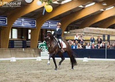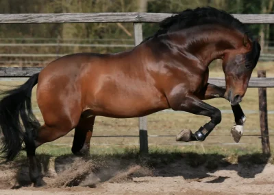 Volwassen hengst welke inmiddels aan zijn zoveelste wedstrijd carrière begonnen is. ZZ Zwaar gekwalificeerd in de dressuur. Alle nakomelingen hebben fijne bewegingen, vaak wordt zijn speciale bruine glans vererfd en zijn goed van maat. Heeft ook al hele bijzondere kruisingen met Friezen en KWPN paarden gebracht! Machtige hengst, een stoere boy.