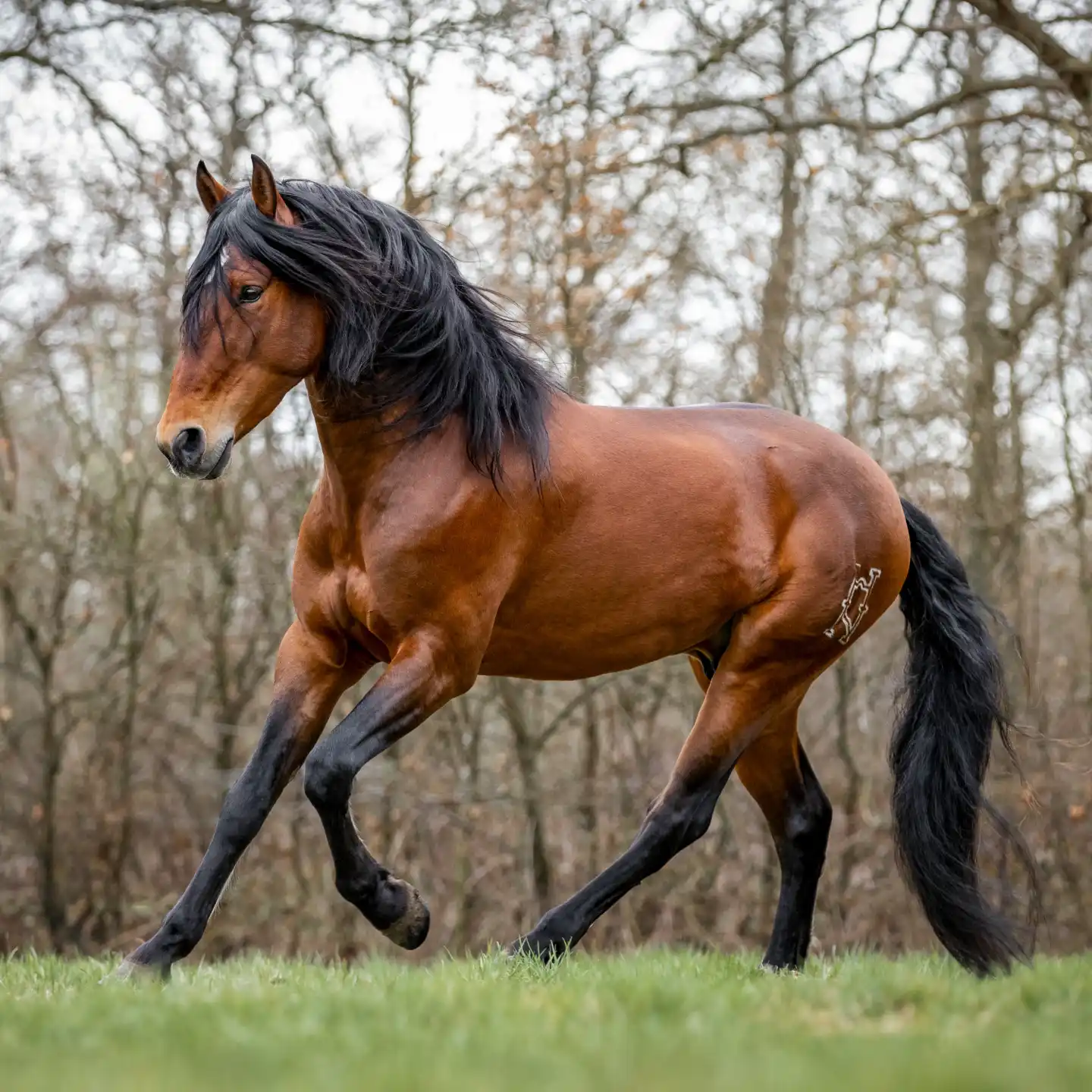Heroe is een paard met uitstraling én barokke bouw. Heroe is 1,60m en een vriendelijk, nuchter paard met een zacht en eerlijk karakter. Hij beweegt correct, laat zich fijn bewerken en blinkt uit in veelzijdigheid: dressuur ligt hem goed en hij springt 1m. Zijn kalme aard en fijne instelling fokt hij duidelijk door – meerdere nakomelingen dragen zijn betrouwbare karakter en werkwilligheid. Heroe is een waardevolle partner, zowel in de sport als in de fokkerij.