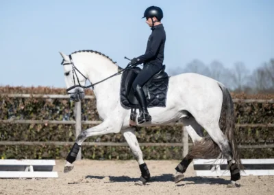 De aanleg voor dressuur heeft Poniente inmiddels bewezen met een gemiddelde score van meer dan 76% bij de proeven voor 5-jarigen. Hij is nog jong en wordt momenteel verder opgeleid voor de hogere dressuur en een belofte voor de toekomst.