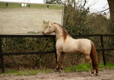 Succesvolle hengst met super karakter, schrikt nergens van en geeft zijn ruiter goed gevoel. Heeft inmiddels een goedgekeurde zoon. Heeft dubbel pearl gen, waardoor hij zeer interessant is voor de kleuren fokkerij. Fijne beweger met super gangen. DNA rapport beschikbaar op onze website.